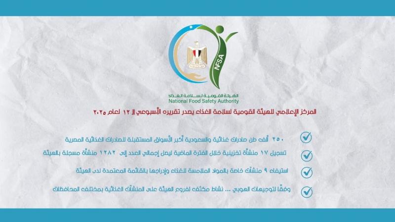 المركز الإعلامي للهيئة القومية لسلامة الغذاء يصدر تقريره الأسبوعي الـ 12 لعام 2025