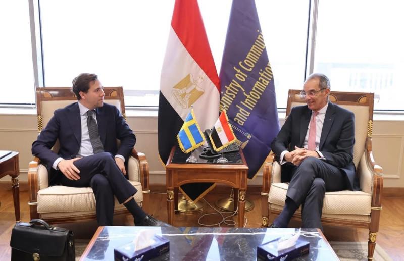 وزير الاتصالات يبحث مع وزير التجارة الخارجية والتعاون الإنمائى الدولى السويدى سبل تعزيز التعاون