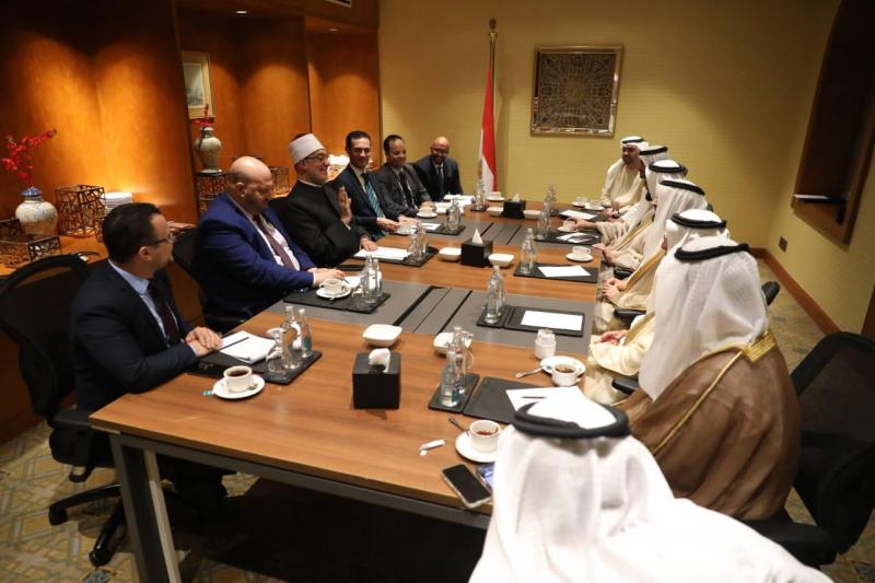 وخلال اللقاء رحب المفتي بالضيفين الكريمين، معبرًا عن شكره وتقديره لتلبيتهما دعوة الحضور إلى المؤتمر، مؤكدًا أهمية هذه اللقاءات والشراكات في تعزيز أواصر التعاون بين المؤسسات الدينية بين مصر ودولة الإمارات العربية المتحدة، وثمَّن مفتي الجمهورية المخرجات العلمية التي شارك بها الوفد الإماراتي في مؤتمر هذا العام، مؤكدًا أن مثل تلك الشراكات ستفتح مجالات جديدة للعمل المشترك على المستوى الدولي، وستُسهم في تعزيز العملية الإفتائية وتطوير آلياتها بما يواكب المستجدات الحديثة.