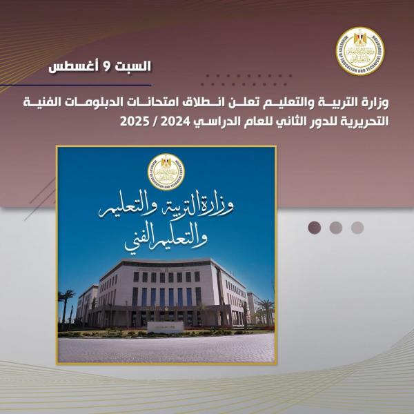 أعلنت وزارة التربية والتعليم والتعليم الفنى انطلاق الامتحانات التحريرية لدبلومات المدارس الثانوية الفنية، صباح اليوم، بكافة النوعيات (صناعي – زراعي – تجاري – فندقي) في كافة أنظمة التقدم (نظام السنوات الثلاث – إعداد مهني – نظام السنوات الخمس – تعليم وتدريب مزدوج – تكنولوجيا تطبيقية) على مستوى الجمهورية للعام الدراسي الحالي 2024 / 2025، وذلك اعتبارًا من يوم السبت الموافق 9 أغسطس 2025، وتستمر حتى يوم الثلاثاء الموافق 19 أغسطس 2025.