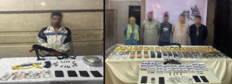 وعثر بحوزتهم على (أكثر من نصف طن من المواد المخدرة المتنوعة "حشيش، آيس، هيدرو" – 68 ألف قرص مخدر – 87 قطعة سلاح نارى "80 بندقية خرطوش 4 بنادق آلية، 3 فرد خرطوش).