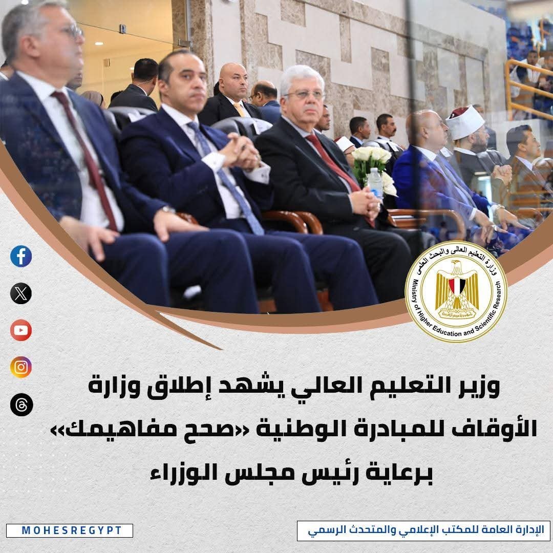 شهد الدكتور أيمن عاشور، وزير التعليم العالي والبحث العلمي، إطلاق وزارة الأوقاف المبادرة الوطنية «صحح مفاهيمك» برعاية دولة رئيس مجلس الوزراء الدكتور المهندس مصطفى مدبولي، وأشار الوزير إلى أن المبادرة تشكل إطارًا متكاملًا لبناء الإنسان المصري، لا يقتصر على تصحيح المفاهيم الدينية، بل يشمل المجالات الفكرية والاجتماعية والسلوكية، ويستهدف تعزيز المقاومة الفكرية والسلوكية لدى المواطن ضد محاولات التضليل والأفكار المتطرفة، مؤكدًا دور الجامعات والمعاهد في ترسيخ ثقافة الحوار وقبول الآخر، وبناء جيل واعٍ يساهم بفعالية في تنمية وطنه.