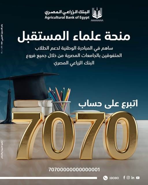 وأوضح أن التبرع لدعم المنحة متاح عبر الحساب رقم 7070 في جميع البنوك المصرية، أو من خلال تطبيق «إنستاباي» تحت مسمى “منحة علماء المستقبل 7070”.